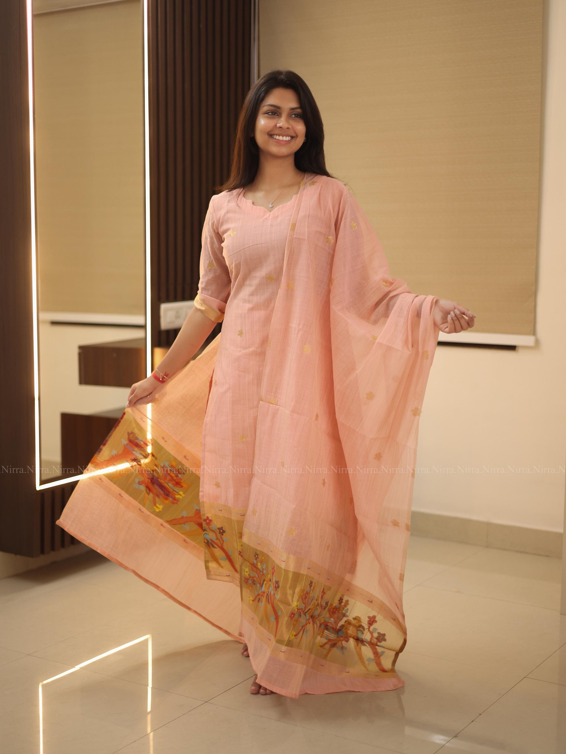 Pink linen paithani salwar set