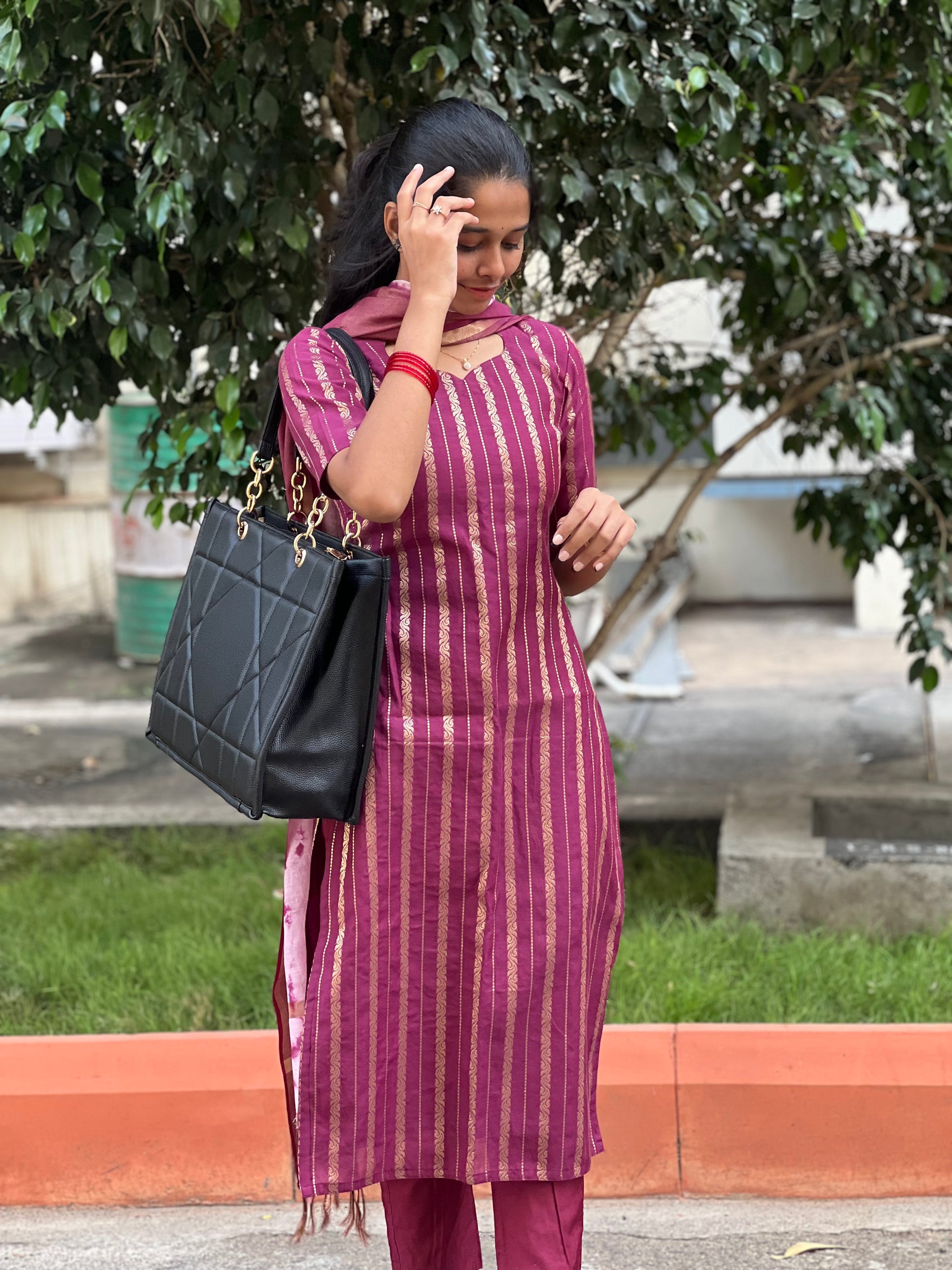 Magenta banarasi chanderi suit with marble dye duppata