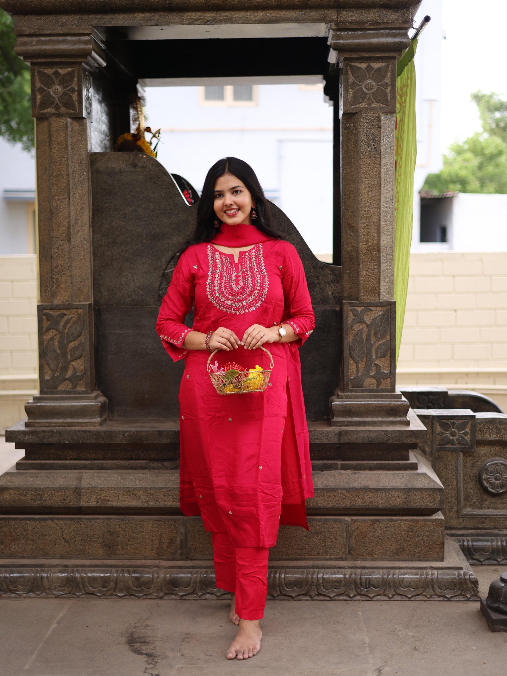 Pink silk embroidery salwar set