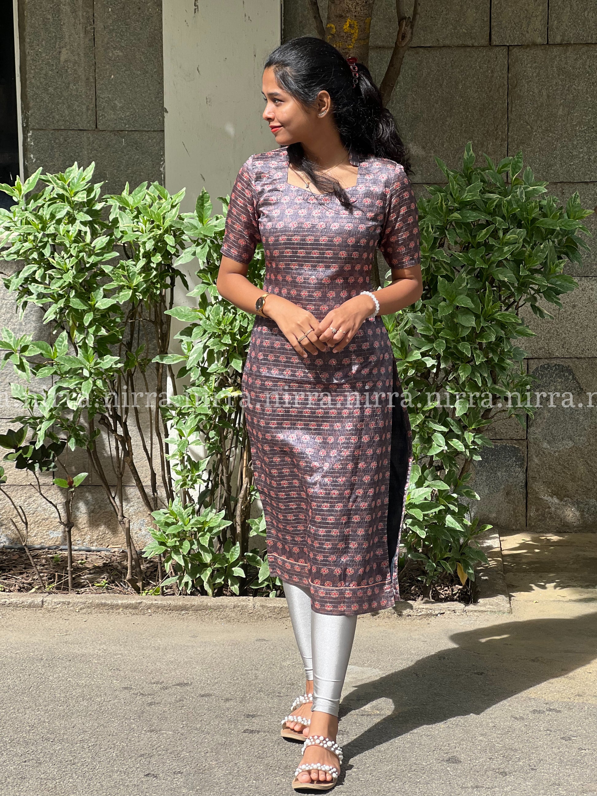 N083- Look chic in our sequins work semi tussar silk grey kurti